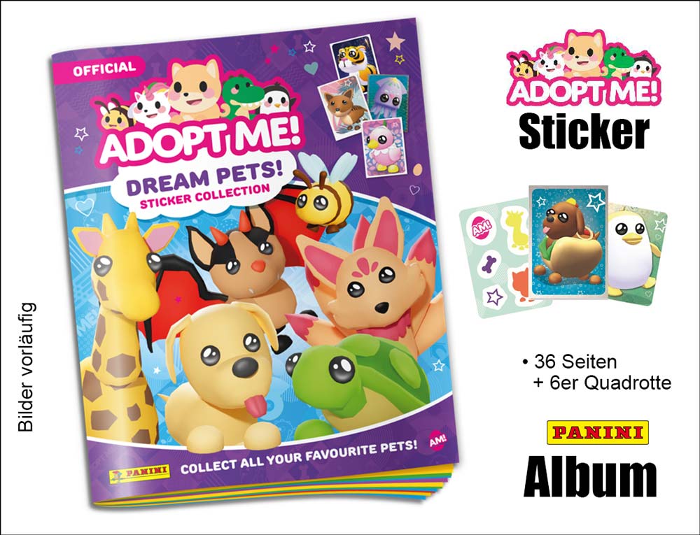 ADOPT ME! ist bei den jüngsten Gamern auf der Onlineplattform Roblox nicht mehr wegzudenken. Jetzt kommt das erste Stickeralbum von Panini mit den beliebten Charakteren aus dem Tierreich und vielen Special Effects.